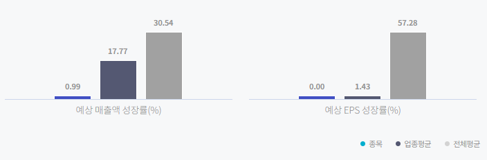 또한, 미래성장성이 매우 낮은 기업입니다. 과거뿐 아니라 미래에도 성장 가능성이 낮게 평가됩니다.