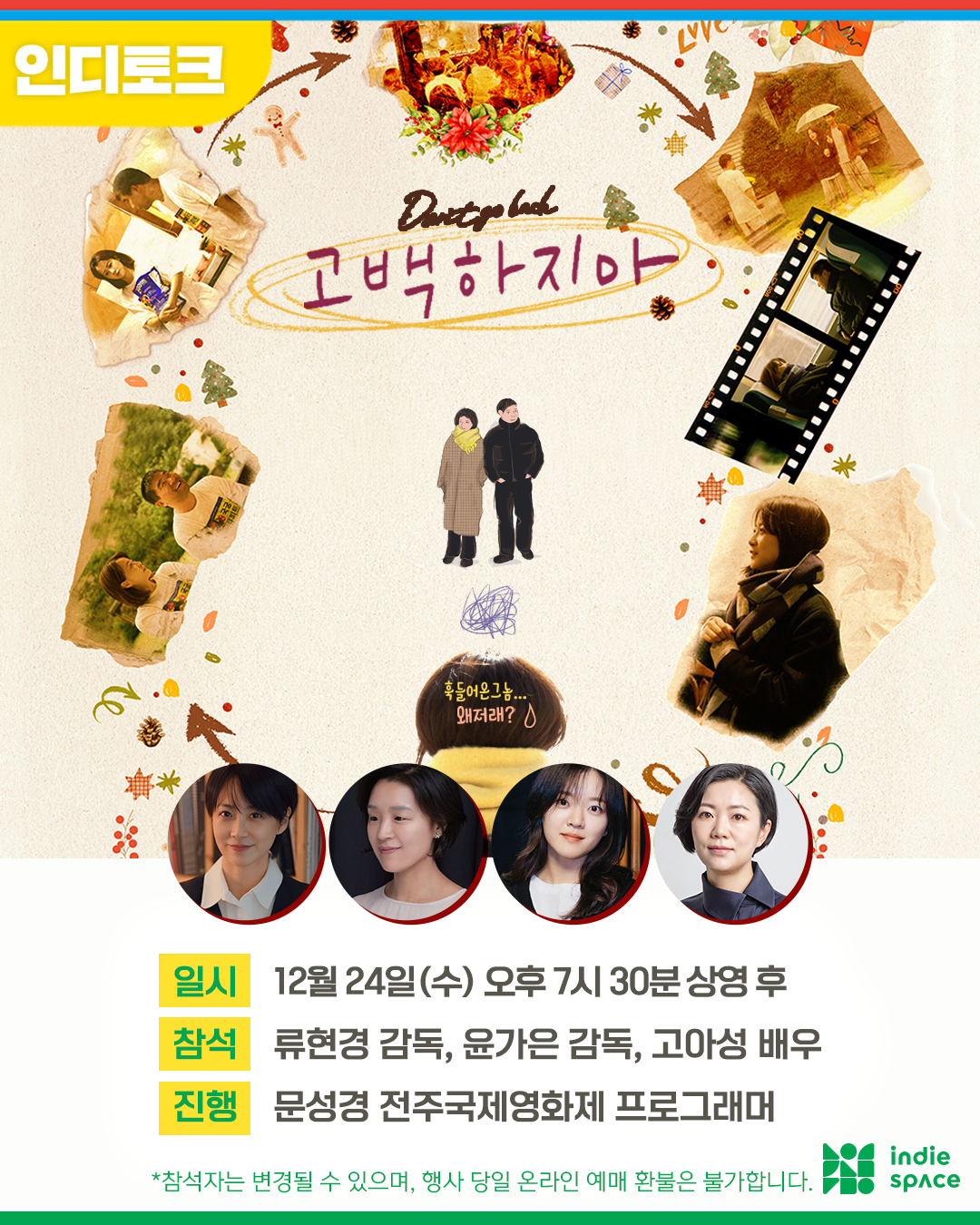 겨울이 깊어가는 이 계절, 류현경의 고백하지마와 함께 따뜻한 시간을 보내시길 권합니다. 69분이면 충분합니다. 극장을 나설 때 왠지 핫초코 한 잔이 생각날 거예요. ☕